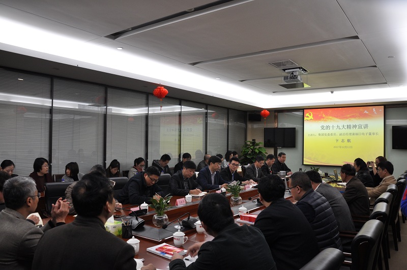 根據省電子信息集團黨委統一安排,20171212日下午,集團黨委委員、副總經理兼福日電子董事長卞志航到公司作黨的十九大精神宣講。福日電子黨委書記李震主持報告會,公司機關支部全體黨員、本部助理以上管理人員以及成員企業、事業部副總以上領導共計40余人參會。