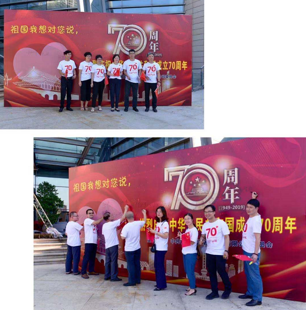 2019年9月以來,由福日電子黨委主辦、各所屬企業協辦的慶祝新中國成立70周年系列活動陸續展開,9月26日下午活動進入高潮。福日電子本部及所屬在榕企業在福州五一廣場隆重舉辦了“我和國旗同框”百人合影和“祖國我想對您說”活動。公司黨委書記李震等公司領導和各企業干部職工共130余人參加了活動。