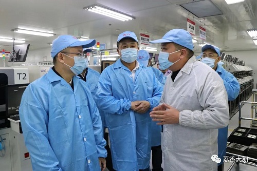 萬卓培一行在大朗鎮相關負責人的陪同下,前往福日電子二級控股子公司廣東以諾通訊有限公司開展調研,深入企業車間,了解企業生產情況以及未來發展規劃,并就企業提出的生產經營中問題和困難進行了交流。