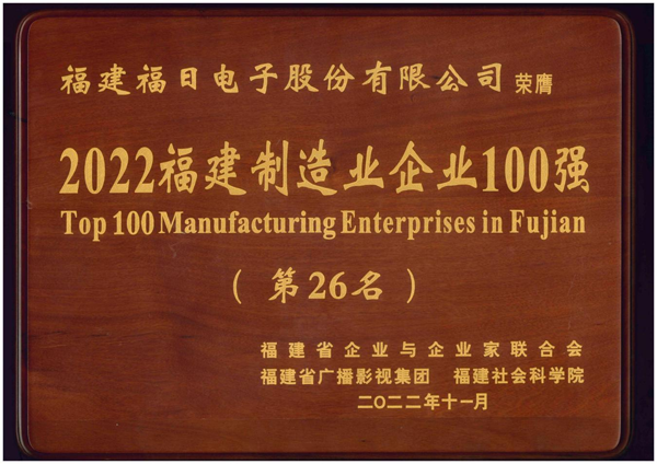 12月7日下午,2022福建企業(yè)100強(qiáng)發(fā)布大會(huì)在莆田舉行,會(huì)上發(fā)布了“2022福建企業(yè)100強(qiáng)”“2022福建制造業(yè)企業(yè)100強(qiáng)”“2022福建服務(wù)業(yè)企業(yè)100強(qiáng)”“2022福建戰(zhàn)略性新興產(chǎn)業(yè)企業(yè)100強(qiáng)”4個(gè)榜單。福建福日電子股份有限公司連續(xù)4年入圍福建制造業(yè)企業(yè)100強(qiáng),位列第26名,較去年提高8個(gè)位次,排名再創(chuàng)新高。這是繼該公司今年首度入圍“中國(guó)制造業(yè)企業(yè)500強(qiáng)”后的又一重大突破。