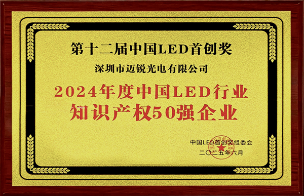 2025年6月,在第十二屆中國LED首創(chuàng)獎頒獎典禮上,福日電子成員企業(yè)邁銳光電成功入選“2024年度中國LED行業(yè)知識產(chǎn)權(quán)50強”,以突出技術(shù)創(chuàng)新力與知識產(chǎn)權(quán)管理能力贏得行業(yè)高度認可。